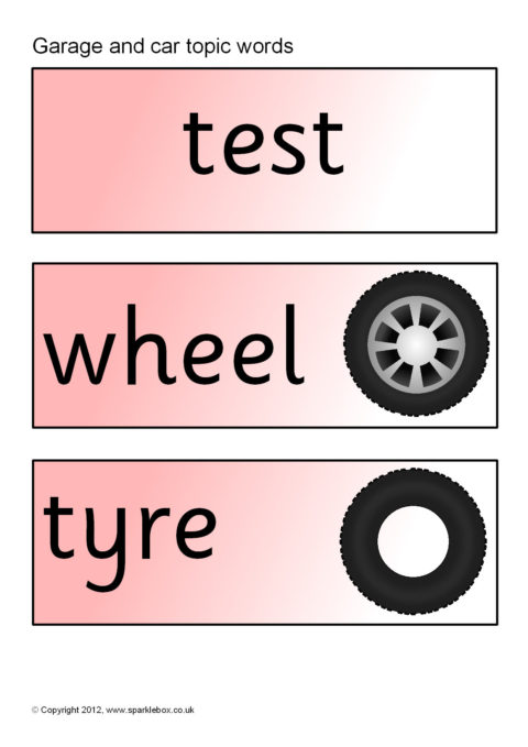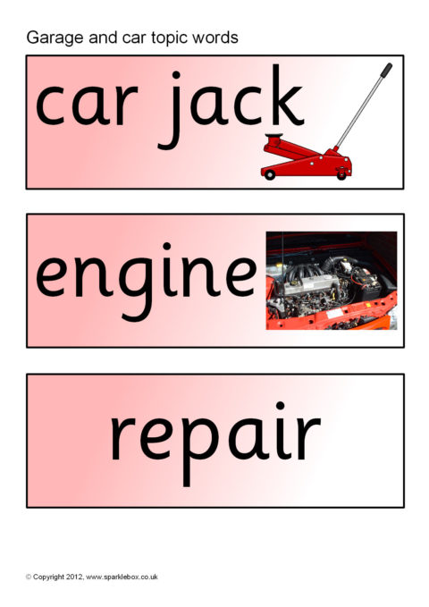 Garage/Car Topic Word Cards (SB199) - SparkleBox