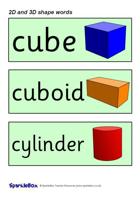 2D and 3D Shapes Word Cards (SB215) - SparkleBox