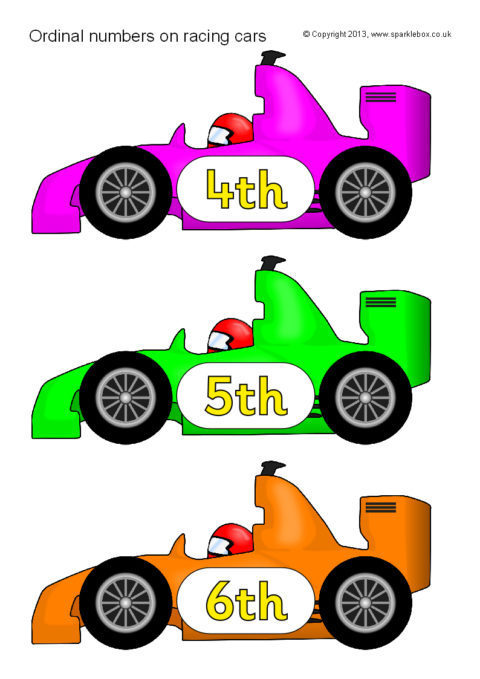 Ordinal Numbers on Racing Cars (SB243) - SparkleBox