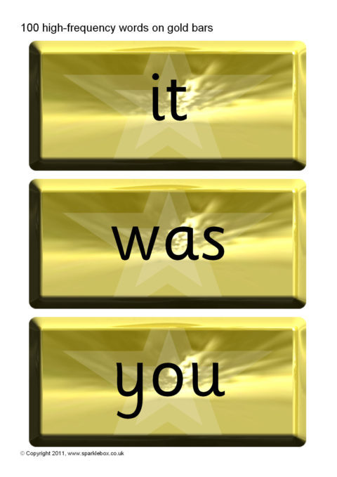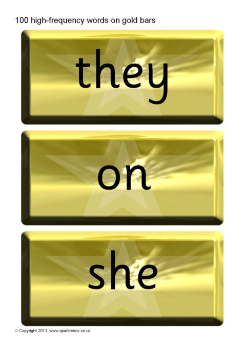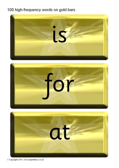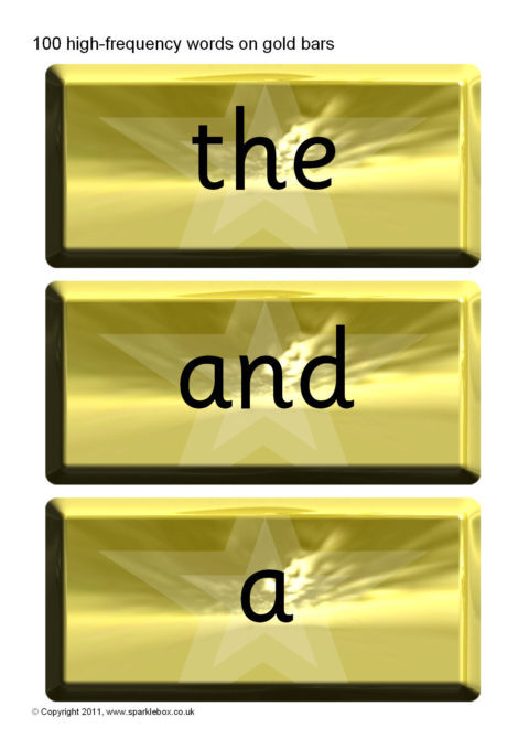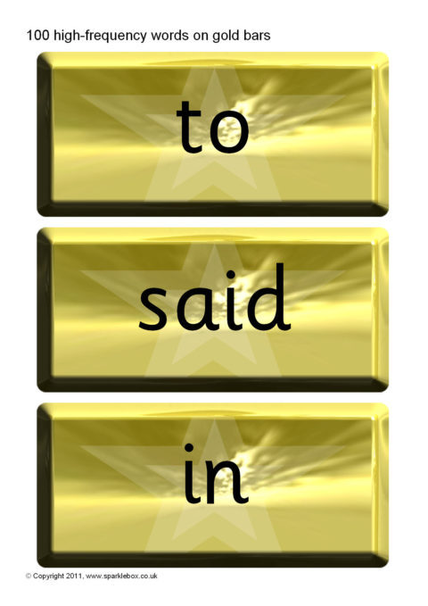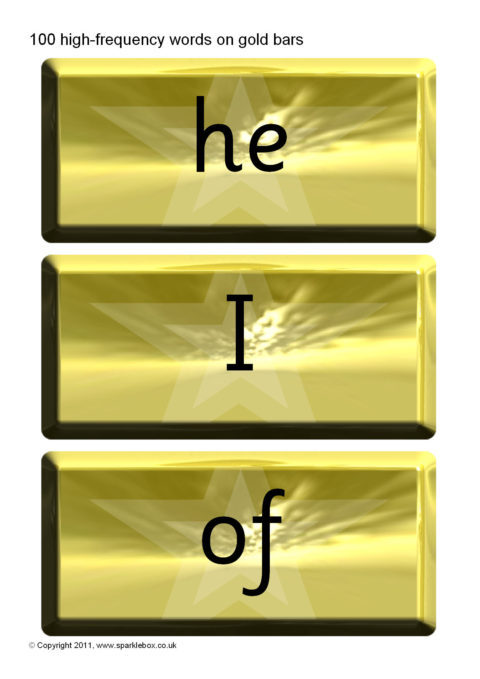 A set of 100 high-frequency words presented on gold bars.  An ideal accompaniment to our Word Vault resource.