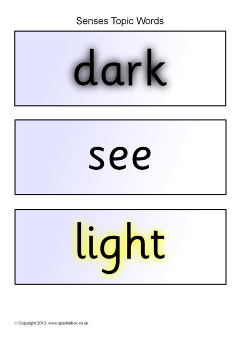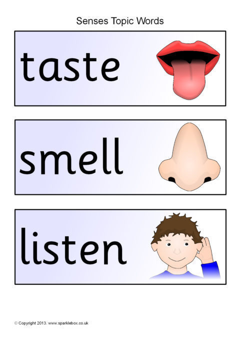 A set of printable word and picture cards linked to a topic on the senses.