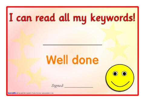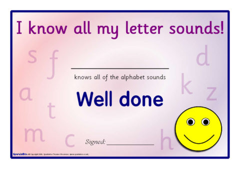 A set of 5 different certificates (A4 sized) for celebrating children’s ability to recognise alphabet sounds and read/write keywords.