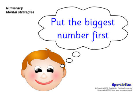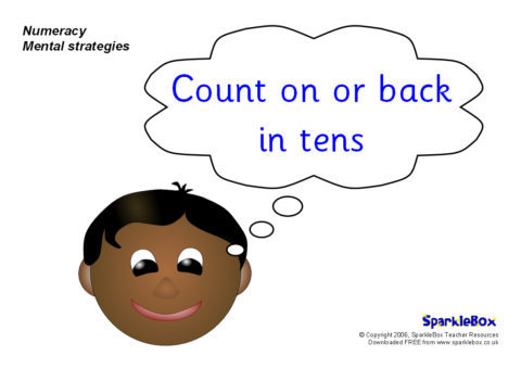 A set of 10 A4 signs to help remind children of the different mental strategies they can apply when working with number problems.  Aimed at Key Stage 1.