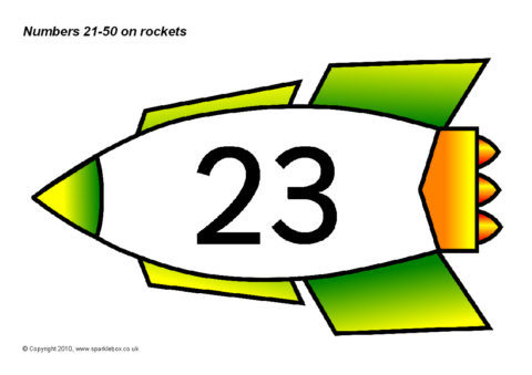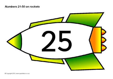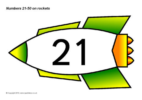 An additional set of rockets with the numerals 21-50. These are great for use in classroom displays and number lines, or can be laminated for ordering activities.