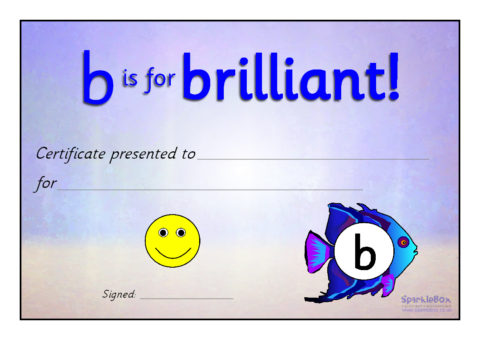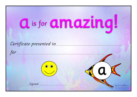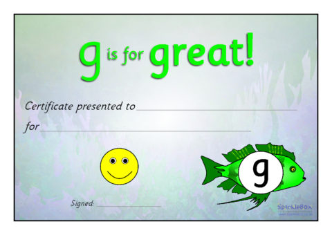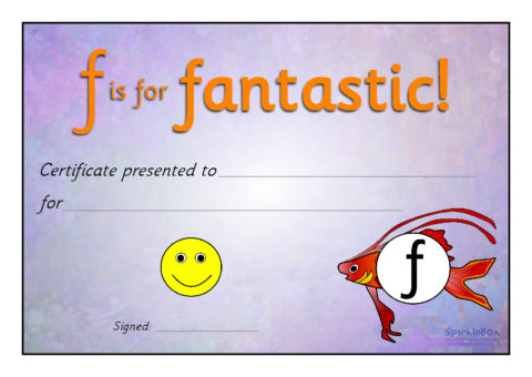A set of 9 colourful reward certificates linked to the Sea of Sounds.  ‘F is for fantastic!’, ‘G is for great!’, ‘P is for perfect!’, ‘W is for wow!’ etc...