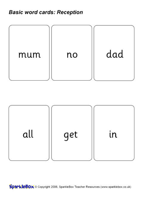 Basic Word Cards – Reception (SB345) - SparkleBox
