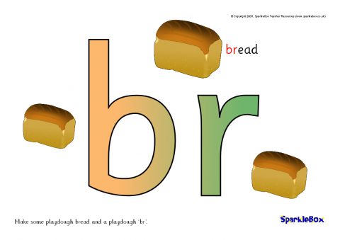 A PDF with 29 A4-sized playdough mats which can be printed and laminated. Each mat shows one of the common initial consonant blends which children can then form themselves by overlaying playdough above the letters. Most of the mats also include relevant and colourful pictures.
