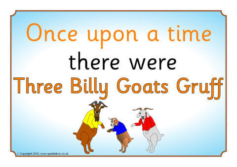 A set of A4-size printable visual aids for use when telling the story of the 3 Billy Goats Gruff. It includes pictures and large story text to aid participation, as well as act as prompts when retelling the story. They can also be printed for use on classroom displays or laminated for whole-class story sequencing activities.