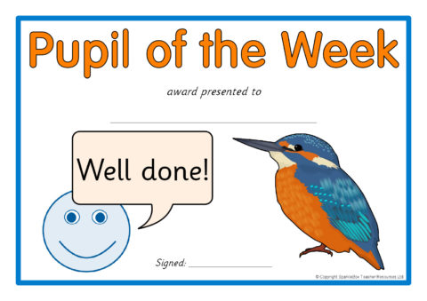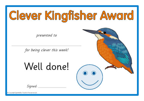 Kingfisher-themed reward certificates to accompany the kingfisher targets.