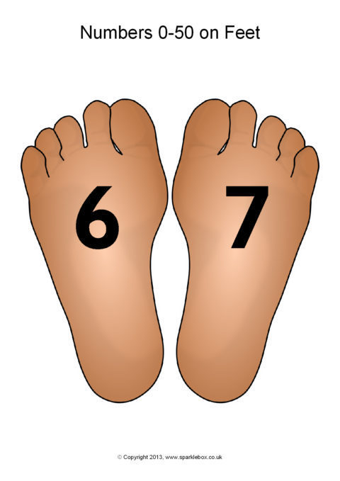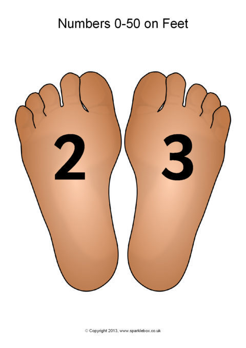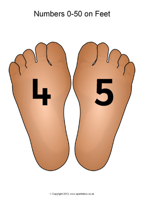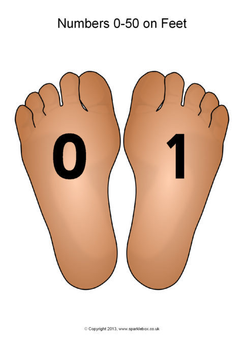 The numbers from 0 to 50 presented on feet.