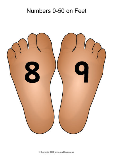 Numbers 0-50 on feet 2
