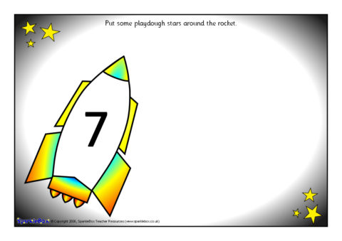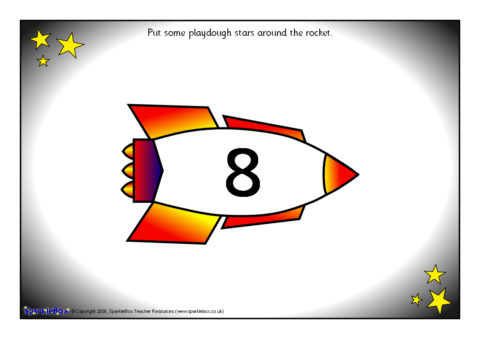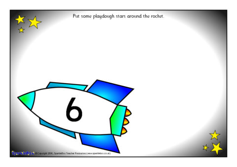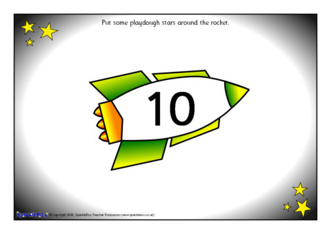 11 A4-sized printable sheets that can be laminated and used with playdough. Children read the number (1-10) on the rocket and make the corresponding number of playdough stars around it. Includes one blank rocket for children to write their own number using a dry-wipe pen.