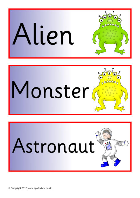 A fantastic group of printable resources for your Spaceship role-play area. The set includes a banner, authentic-looking warning signs and a printable log book where children can write about their journeys into space.