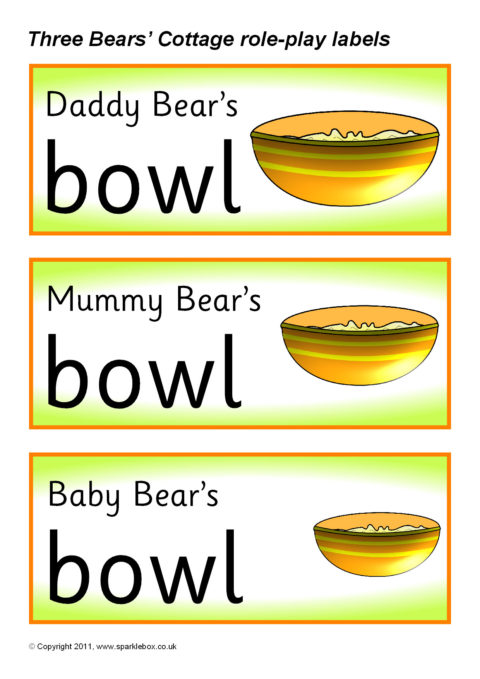 A useful set of printable resources to use in your Three Bears Cottage role-play area. The downloadable pack includes labels, a banner, useful printable pictures that can be used as visual aids or for size comparison, plus a blank recipe sheet and sorry letter from Goldilocks.