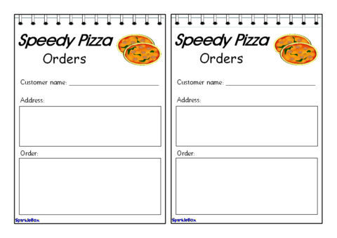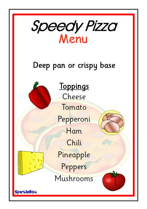 A useful set of printable resources to use in a Pizza Delivery role-play area. The downloadable pack includes re-sizable label images, a banner image, a couple of posters and some writing aids for menus and taking orders.