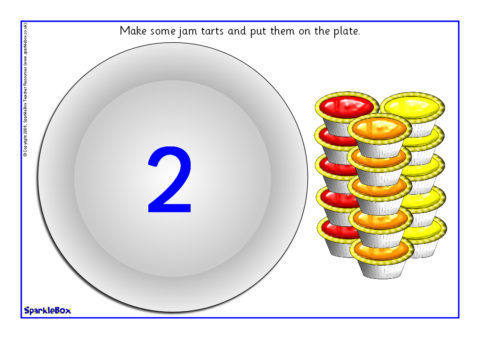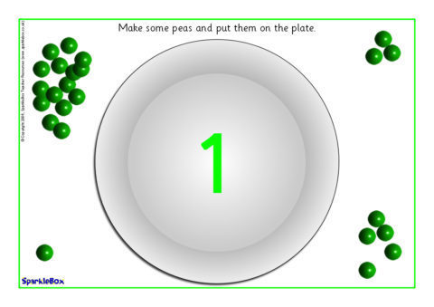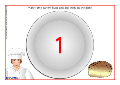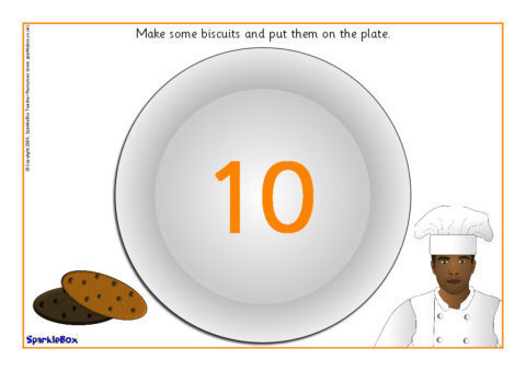 A set of 80 playdough mats with 8 different designs. Each playdough mat has a large plate with a number where children can make their own cakes, gingerbread men, mince pies, carrots, peas and more to put on each plate.
