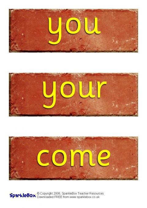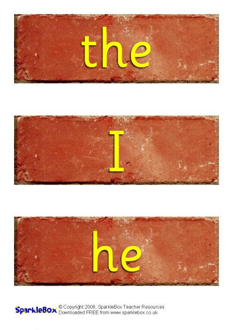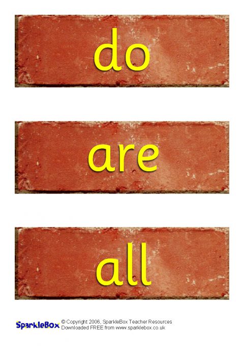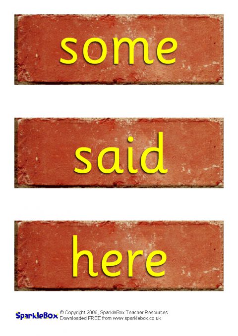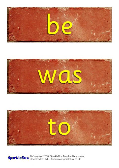 71 tricky key words presented on bricks which can be printed and used in your classroom Word Wall display.