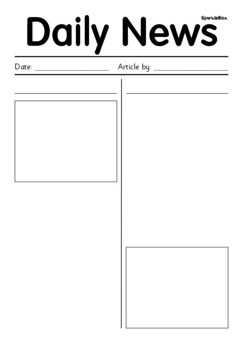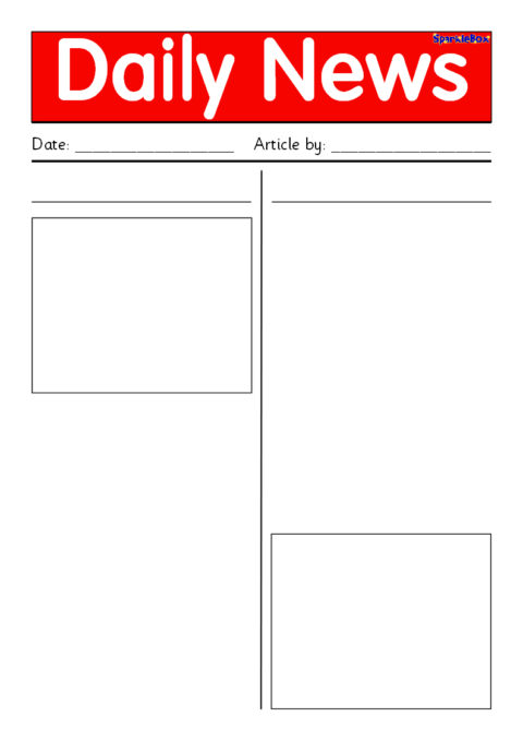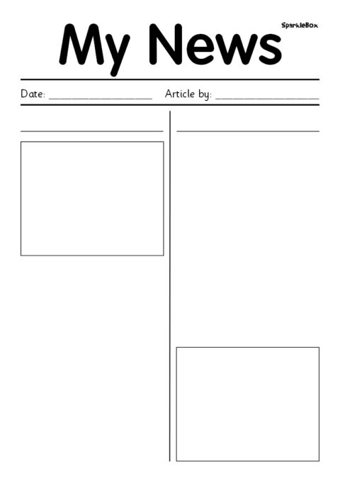 A set of simple A4-sized newspaper-themed writing frames for children to write headlines and reports on events from their own lives or other important occasions.