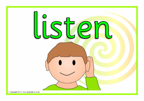 A useful group of signs for use in your classroom listening area.