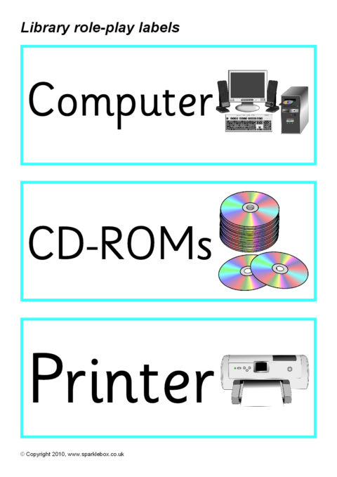 A set of printable resources for use in a library role-play area. They may even be useful for your school library too! The set includes posters, a re-sizable banner image, book order forms, library cards and labels.