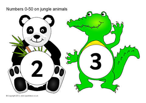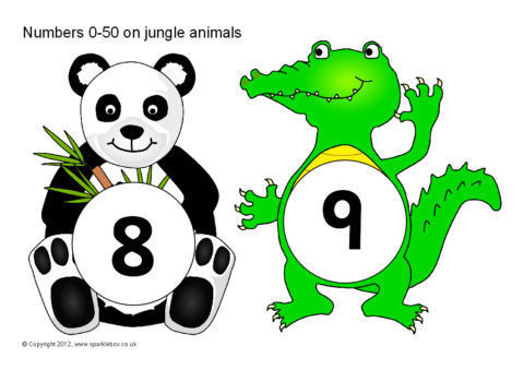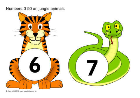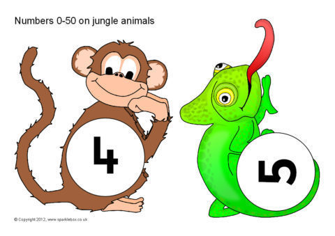 Numbers 0-50 on Jungle Animals (SB601) - SparkleBox