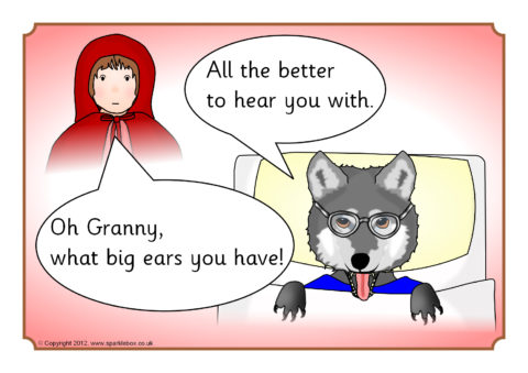 A set of A4-size printable visual aids for use when telling the story of the Little Red Riding Hood. It includes pictures of characters and large story text to aid participation, as well as act as prompts when retelling the story. They can also be printed for use on classroom displays or laminated for whole-class story sequencing activities.