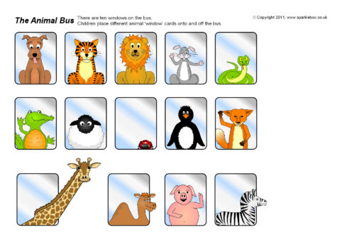 A great activity to reinforce addition or subtraction. There are ten windows on the bus. Children can place different animals ‘window’ cards onto and off the bus.