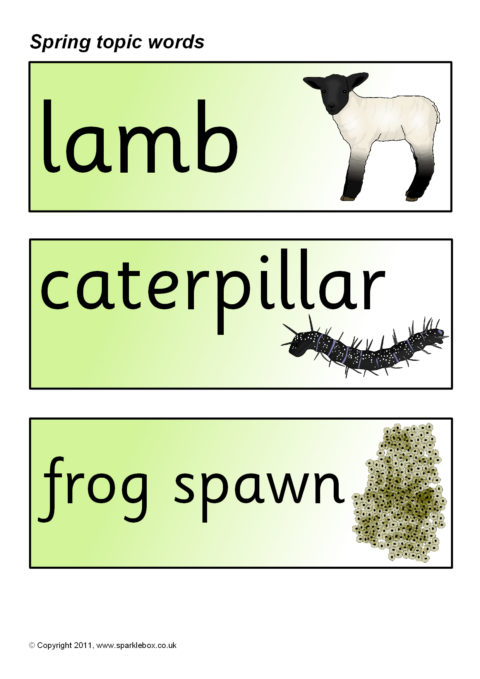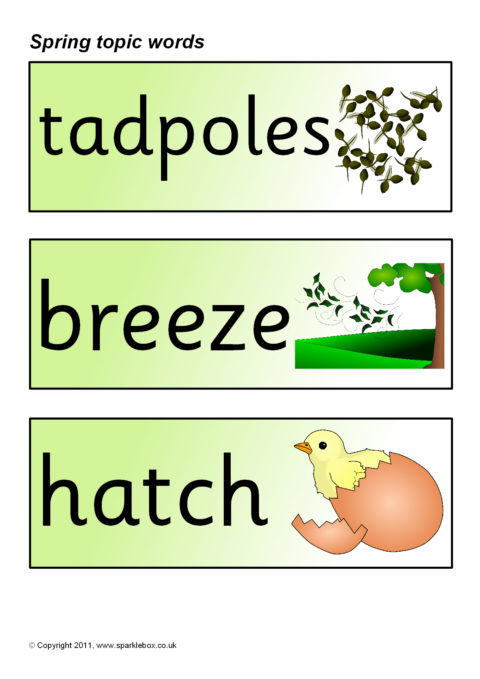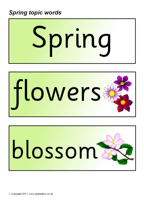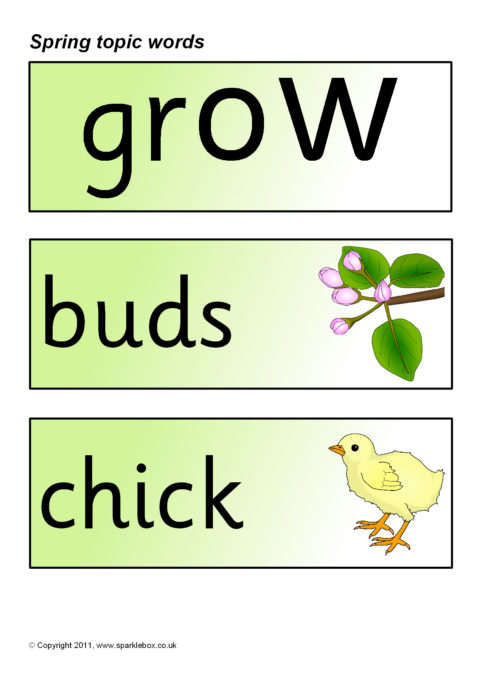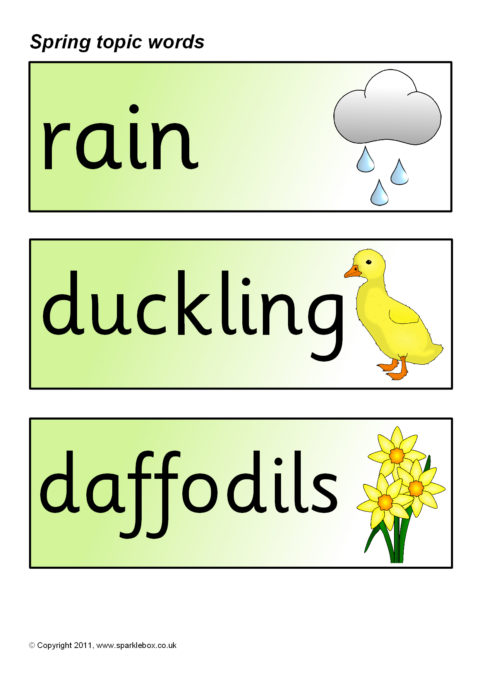 A set of printable word cards with accompanying pictures linked to the season of Spring.