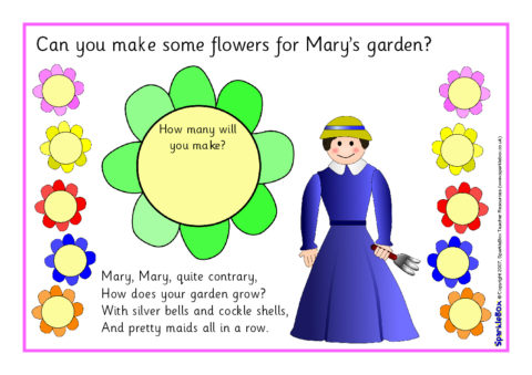 A set of A4-size printable mats that can be laminated for use with playdough. Children can make friends for Incy Wincy Spider, flowers for Mary Quite Contrary, jam tarts for the Queen of Hearts and more.