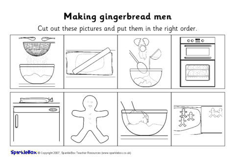 A simple cut-and-stick activity where children order the pictures showing how to make gingerbread men.