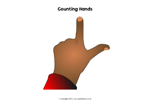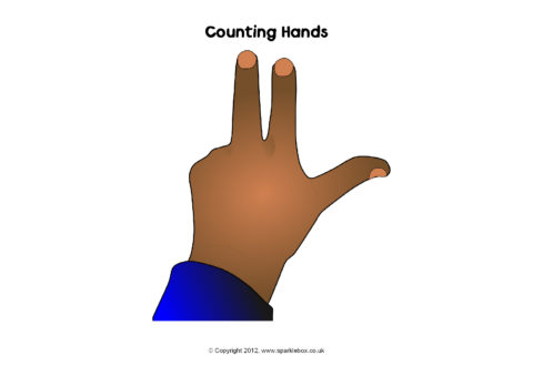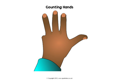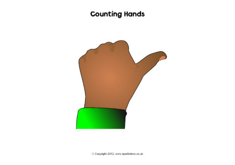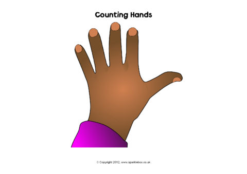 Ten A4 printable sheets showing hands counting from 1 up to 10.
