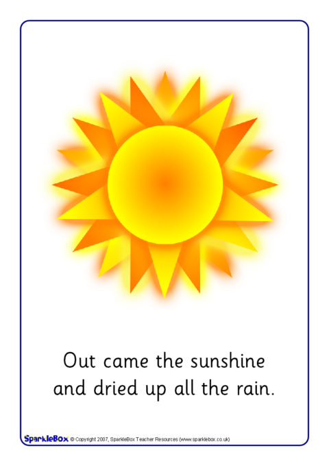 A set of simple A4-size visual aids for use when telling the popular nursery rhyme of Incy Wincy Spider.