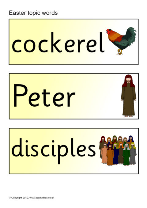 A set of printable word cards with pictures linked to Easter. It includes both religious and non-religious words. These are perfect for use in a topic word bank, or for using in classroom displays linked to Easter.