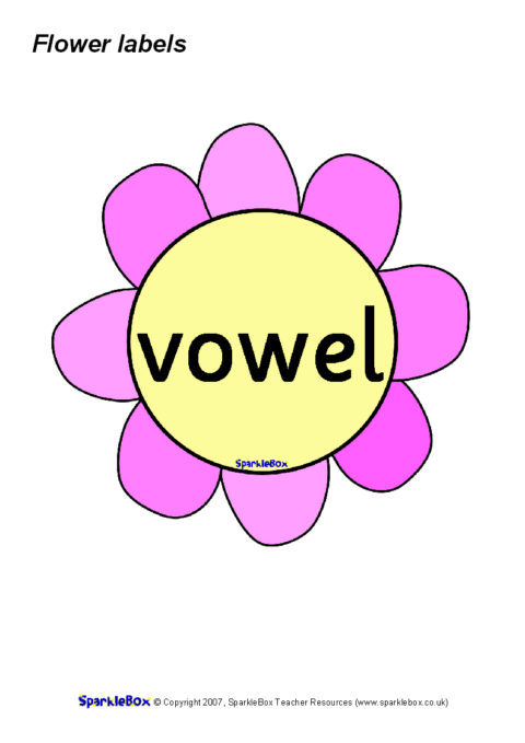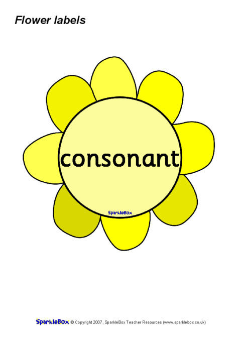 A set of flowers with the words ‘vowel’, ‘consonant’, ‘digraph’ and ‘blend’ to print and hang in your classroom.