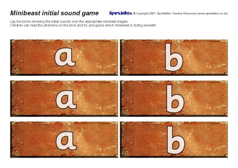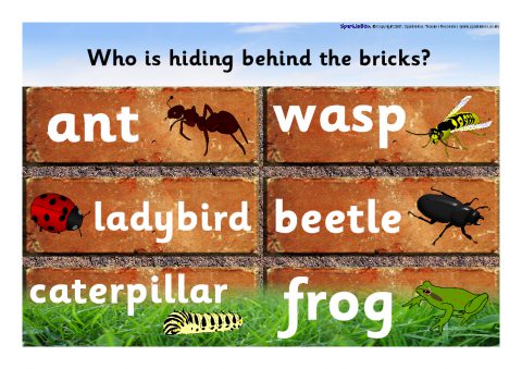 A colourful and fun game aimed at helping children to hear and discuss initial sounds in words. The children read the sound on the brick and try and guess which minibeast is hiding beneath. This resource also links perfectly to a topic on minibeasts.