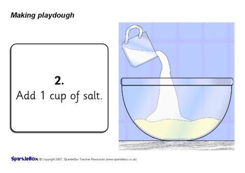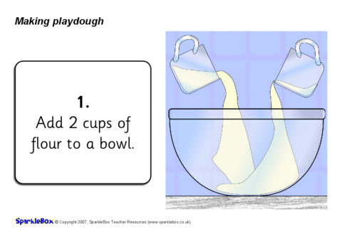 A useful set of simple visual aids showing how to make a playdough in 9 steps. Includes simple instructions for microwave or hob cooking together with accompanying pictures. These could be laminated and used when actually making playdough, or for classroom displays and discussion afterwards.