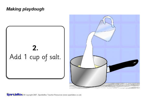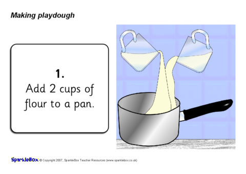 A simple sheet that can be laminated with an ingredients list and basic instructions to make playdough. Includes both microwave and pan cooking versions.