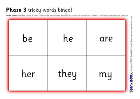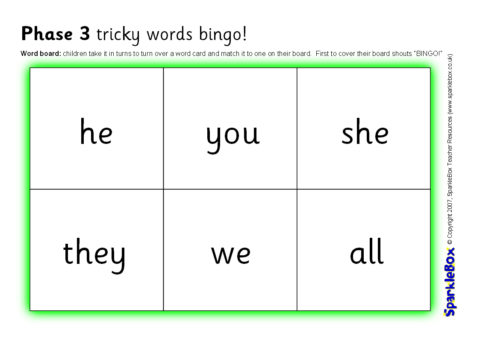 Phase 3 Tricky Word Bingo (SB794) - SparkleBox