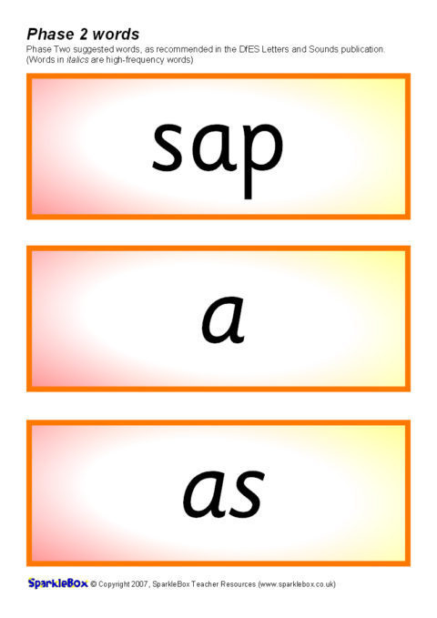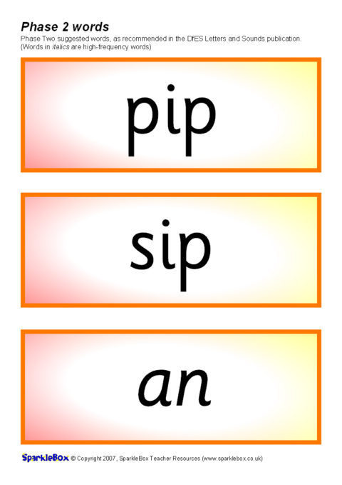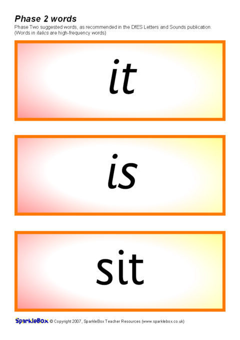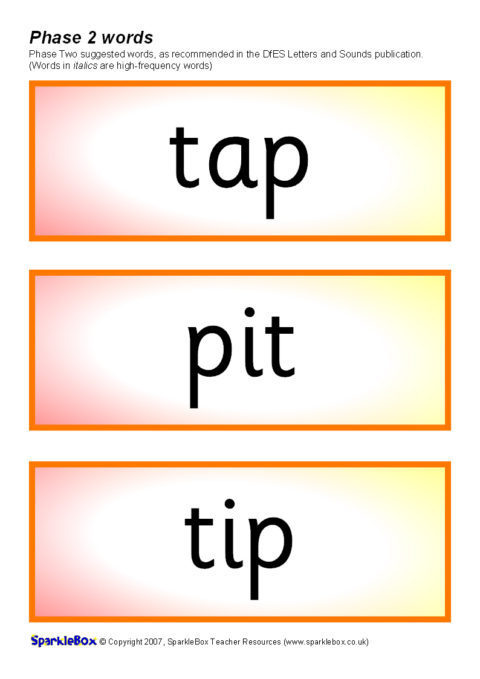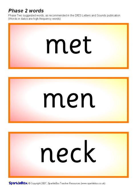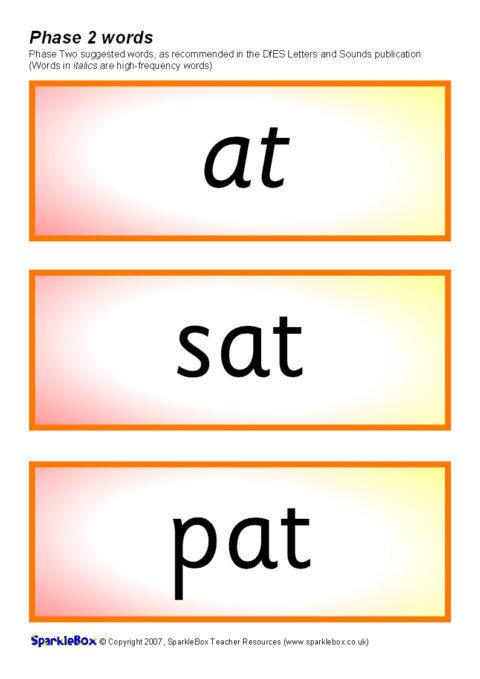 The suggested words for Phase Two as outlined in the DfES Letters and Sounds publication. Over 170 words included.