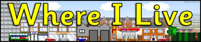 A set of printable banners with the title ‘Where I Live’. Separate banners for village, town and city environments.