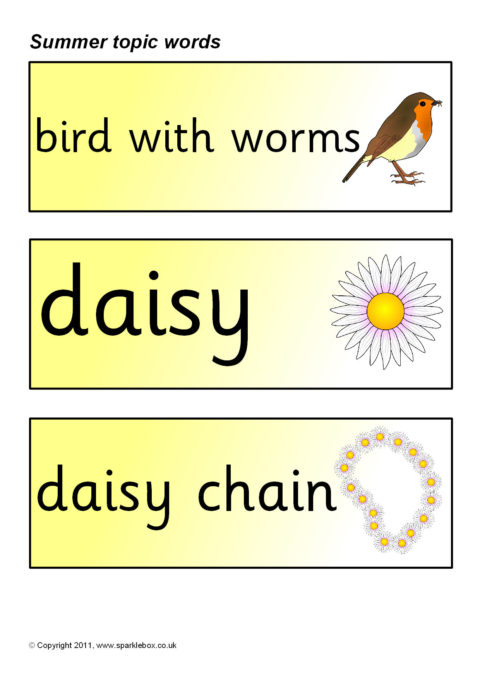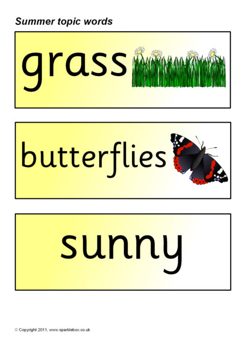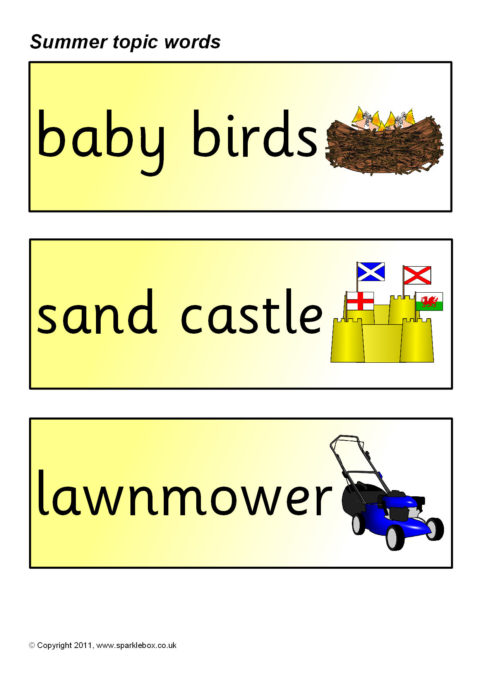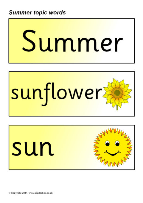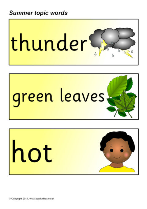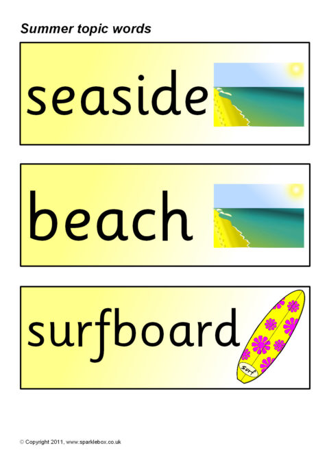 A set of printable word cards with accompanying pictures linked to the season of Summer.