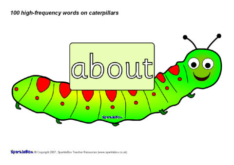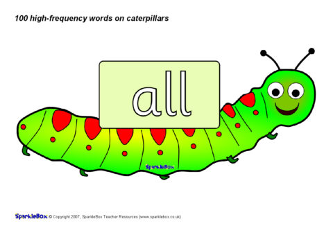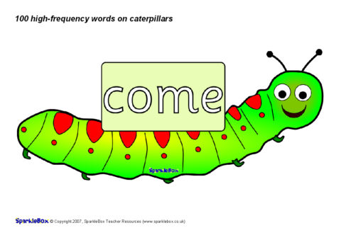 A fun set of caterpillar pictures featuring the 100 high-frequency words as outlined in the DfES ‘Letters and Sounds’ publication. The images are A4 size by default, but can be resized in Adobe Reader to print 2, 4 or 6 per sheet.