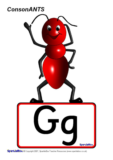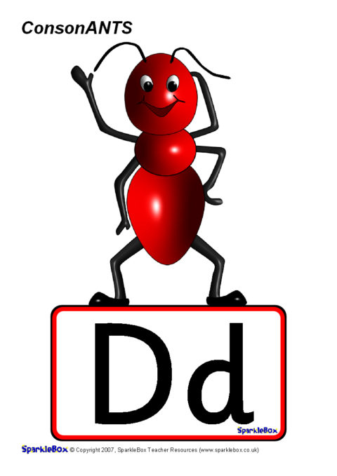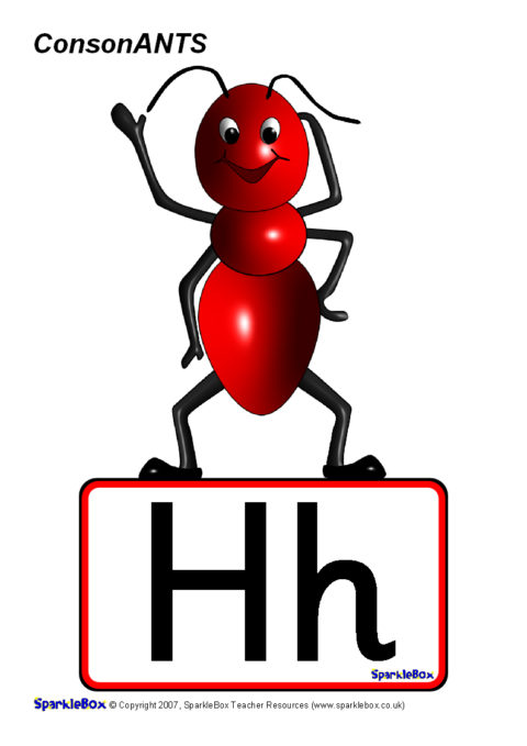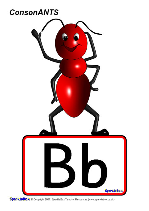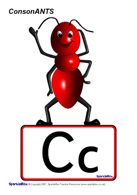A printable set of posters featuring the 21 consonant sounds with ants (in both upper and lowercase).