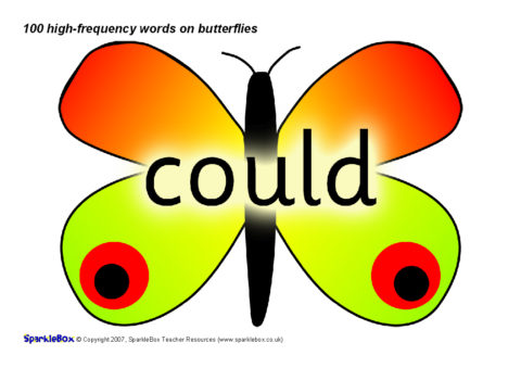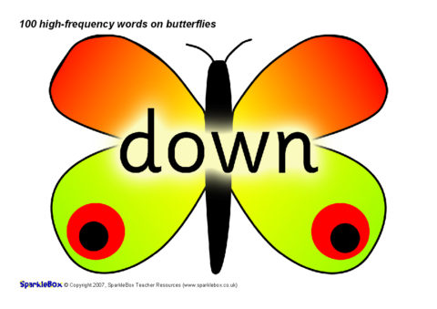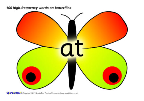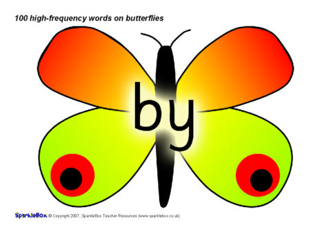 A colourful set of butterfly pictures featuring the 100 high-frequency words as specified in the DfES ‘Letters and Sounds’ publication. The images are A4 size by default, but can be resized in Adobe Reader to print 2, 4 or 6 per sheet.