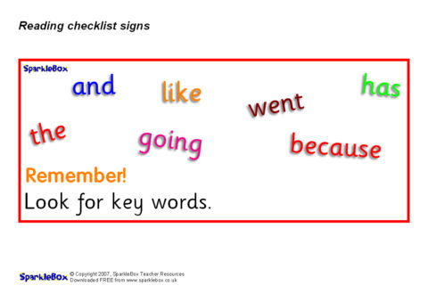 A set of printable colour signs to display in your classroom. They remind children of important things to remember when reading, in a nice visual way.
