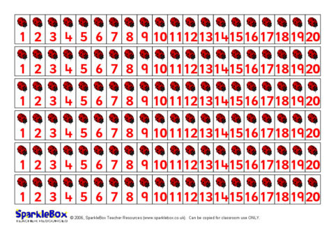 A PDF document with 3 printable ladybird number tracks. 1-10, 11-20 and a full 1-20 track. Your class will love counting with these!