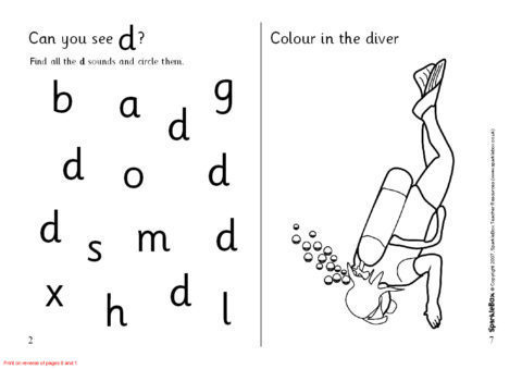 A set of sheets which can be assembled into an A5 folded booklet to give to pupils. It includes activities to aid recognition of the ‘d’ sound. Ideal as a homework resource.
