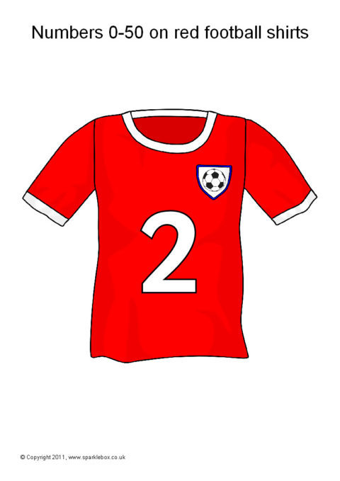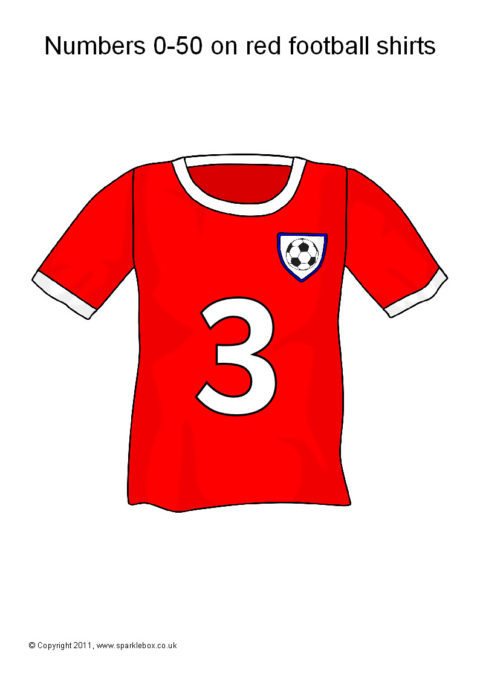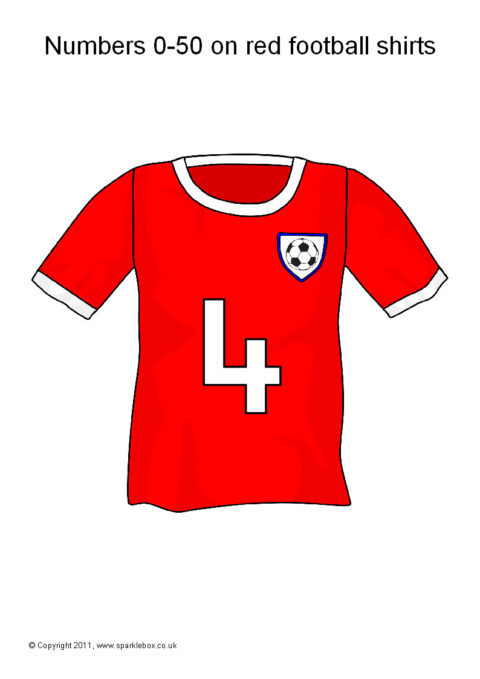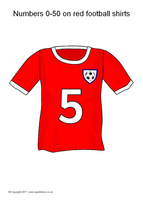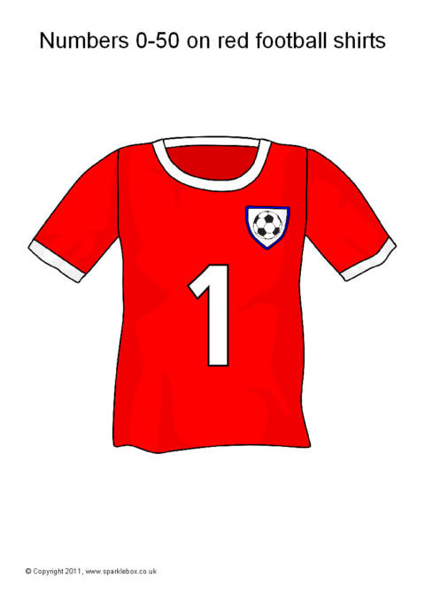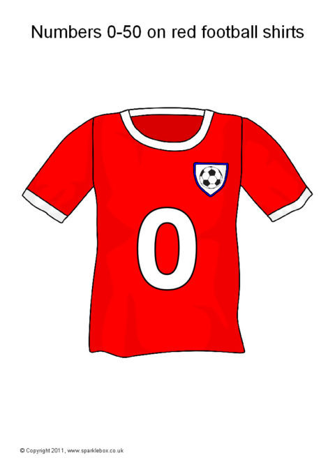 Numbers 0-50 on Red Football Shirts (SB973) - SparkleBox