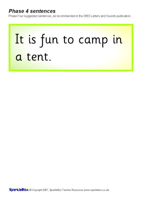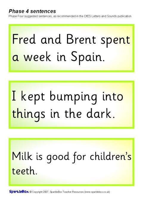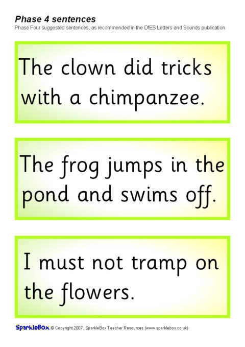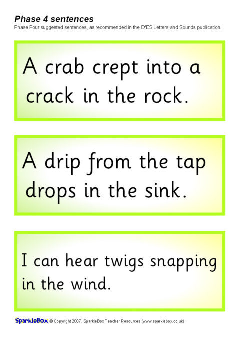 The suggested sentences for Phase Four as outlined in the DfES Letters and Sounds publication.