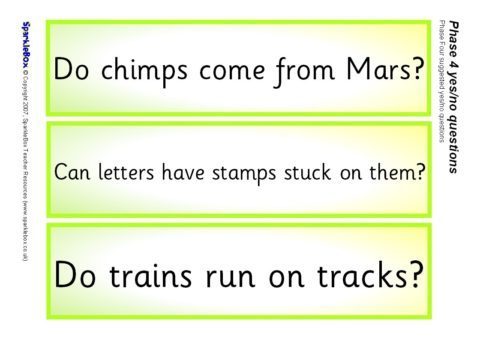 A set of printable cards (3 per A4 sheet) featuring the suggested ‘yes/no questions’ from the DfES Letters and Sounds publication. Also includes pupil ‘yes/no’ cards that can be printed double sided to use as recommended in Letters and Sounds.
